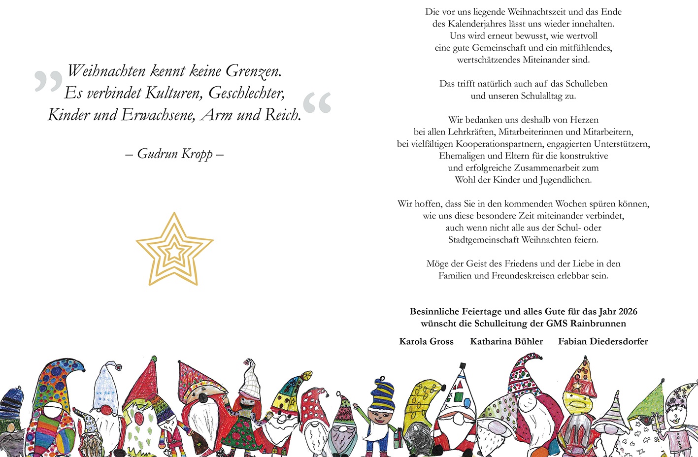 • Das Titelbild unserer diesjährigen Weihnachtskarte entstand im Rahmen des Kunstunterrichts der Klasse 4c (Schuljahr 24/25) unter der Leitung von Sybille Kleinknecht.